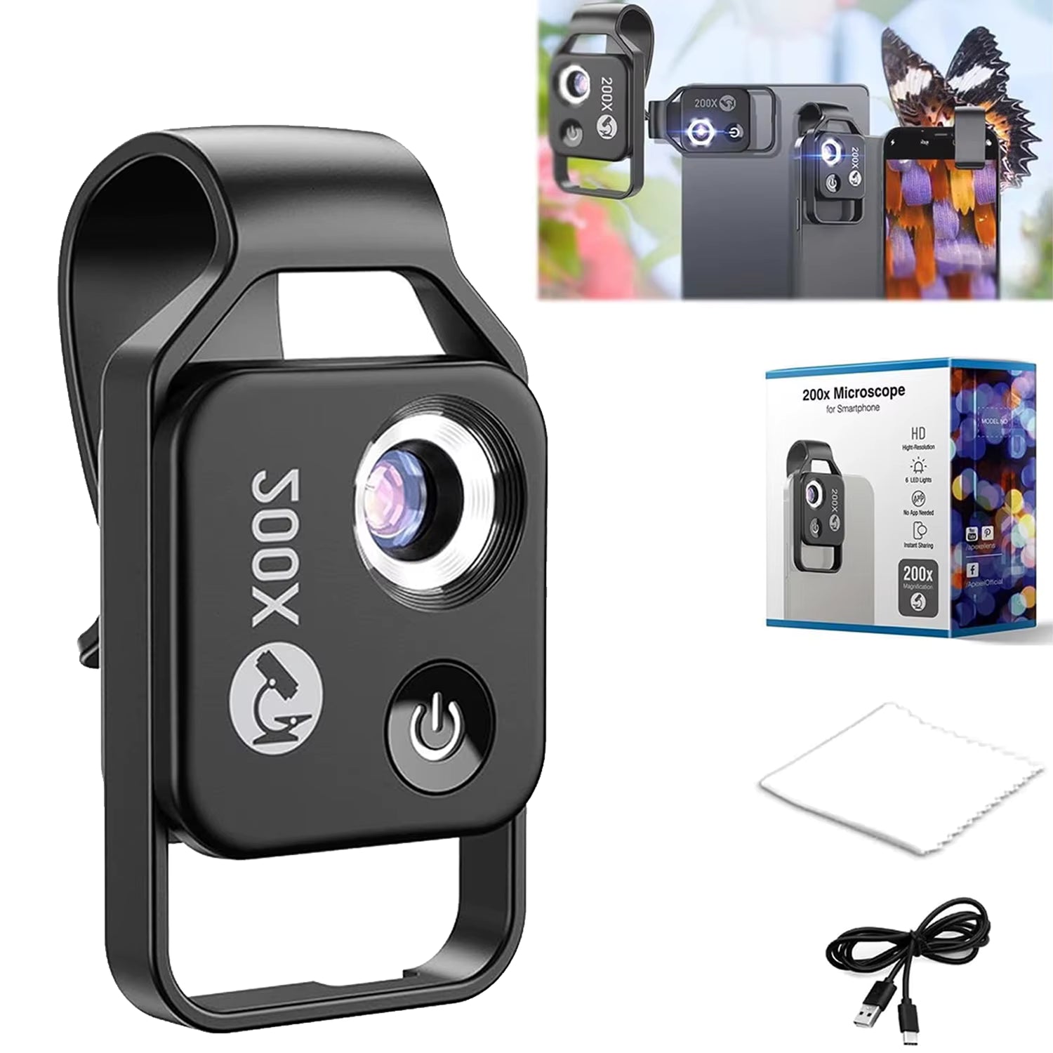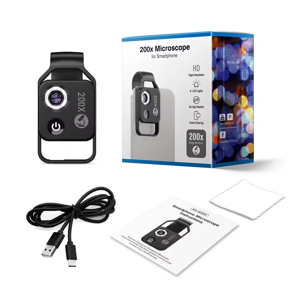 تكبير فعلي 200X مع إضاءة تساعدك تشوف الملمس والتفاصيل الصغيرة جداً بدون تشويش.